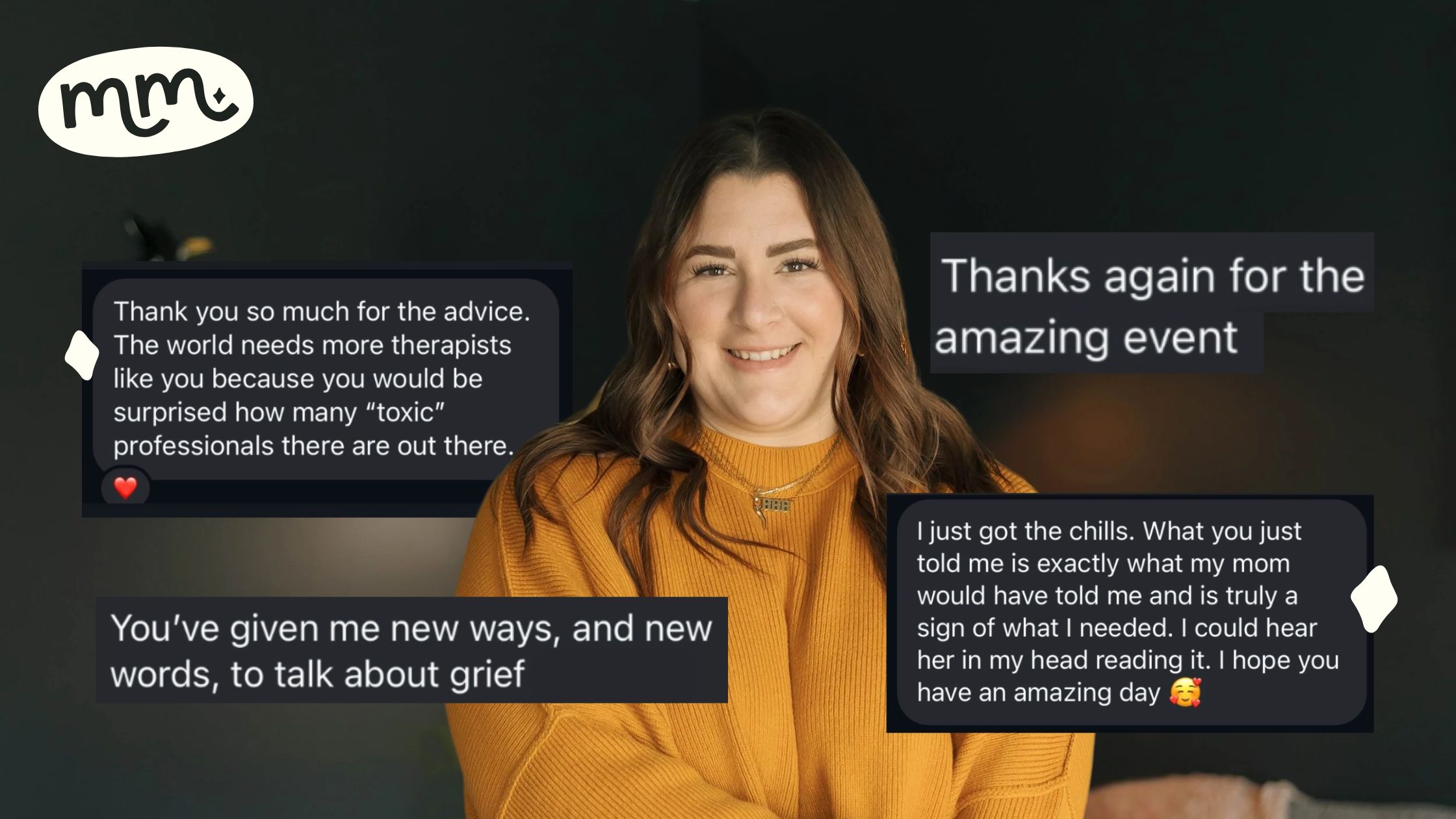 "I really appreciate Miranda's expertise from both a clinical perspective and lived experience. I truly love the [dead mom club]. It's helped more than any of the therapists I've worked with."